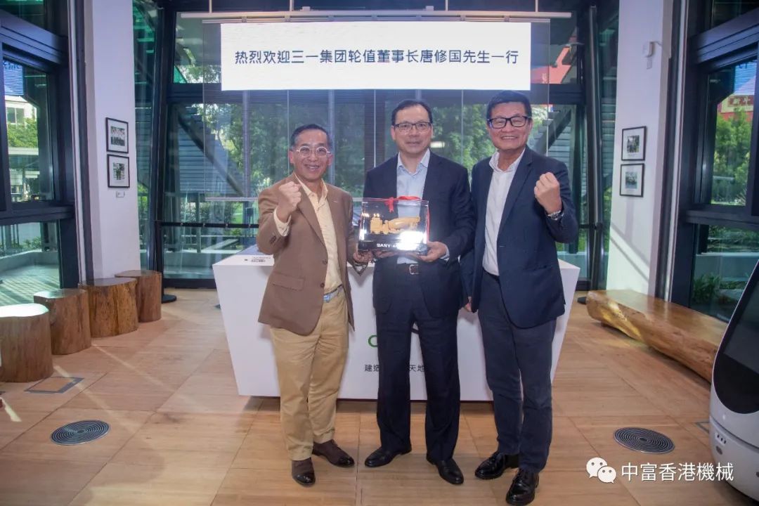 唐总一行参观了香港大学MIC项目青年宿舍,MIC 的优势是现场作业量小、品质一致性好,劣势是灵活性差、成本太高;在香港大学会议室座谈,与香港大学署理行政及财务副校长、土木工程系系主任潘巍教授等专家就装配式建筑发展方向等内容展开深入交流。唐总在座谈会上表示三一具备用装备制造和工业互联网能为MiC降低成本的优势。潘巍教授对三一集团唐总一行表示欢迎,表示三一在智能制造、现代化科研创新等方面取得的成就令人赞叹,之后详细介绍了香港大学MIC项目,并希望双方深化互信、携手共进,在装配式建筑、吊装设备、工程机械电动化等领域加强合作,随后双方交换了纪念礼物。